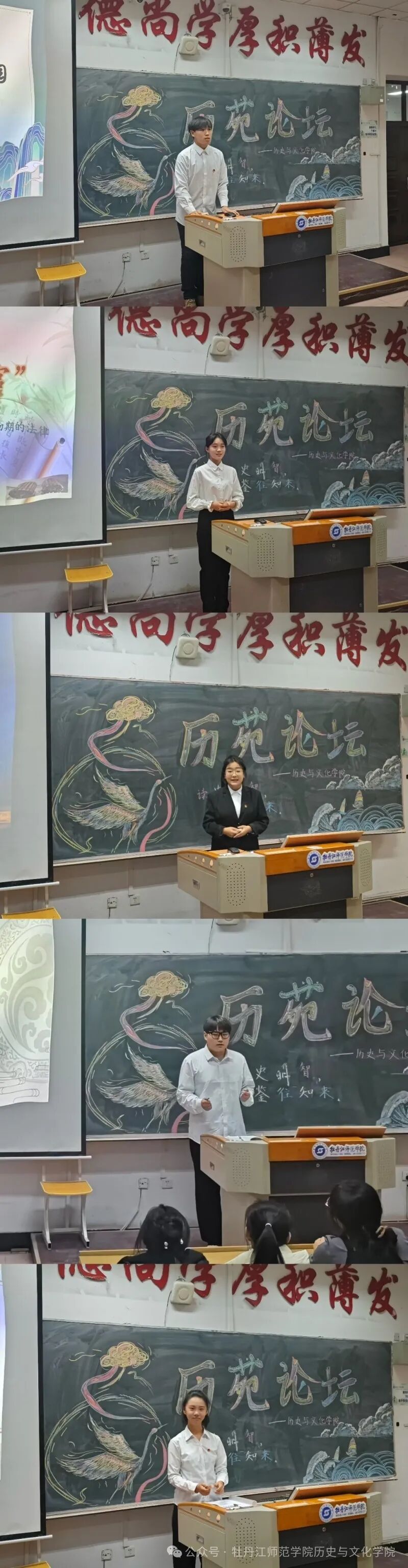 本次活动由郑雅铭同学主持,刘鑫、刘家宁、唐思琪、王敬维、魏鸿雁五位同学依次登场,各展风采。从古老部落的兴衰沉浮,到诸侯纷争的硝烟弥漫;从百家思想的蓬勃兴起,到重大变革的波澜壮阔,同学们用独特的视角与表达,为大家勾勒出一幅先秦历史的恢弘长卷。他们的分享仿若灵动的时光指针,引领着在场的每一个人穿越回那个遥远而迷人的先秦时代,去感受岁月沉淀下的厚重与魅力,去探寻华夏文明在先秦时期所孕育的无限生机与可能。